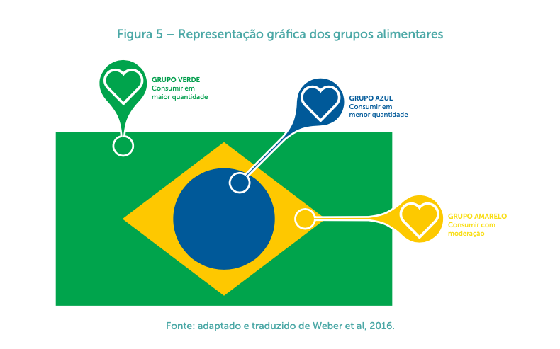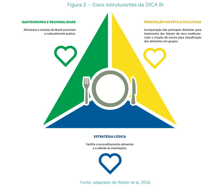 Em solo brasileiro é um padrão alimentar com obstáculos para a adesão, mas temos o Manual de Alimentação Cardioprotetora. Além de eixos estruturantes com conceitos regionais, também há grupos alimentares de acordo com a bandeira nacional: verde, amarelo e azul (3).